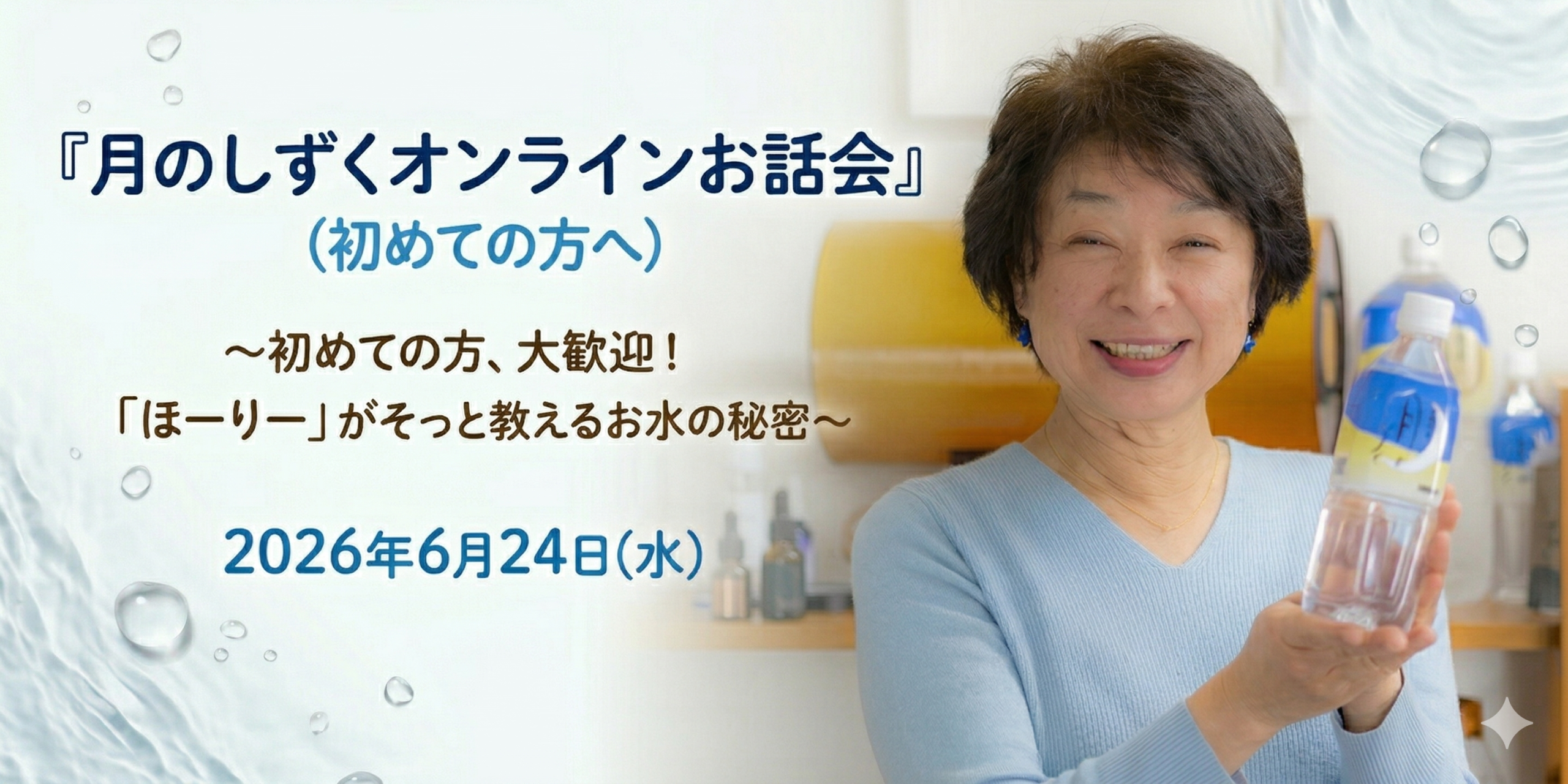 「月のしずくオンラインお話会」(初めての方へ)~初めての方、大歓迎!「ほーりー」がそっと教えるお水の秘密~|2026年6月24日(水)