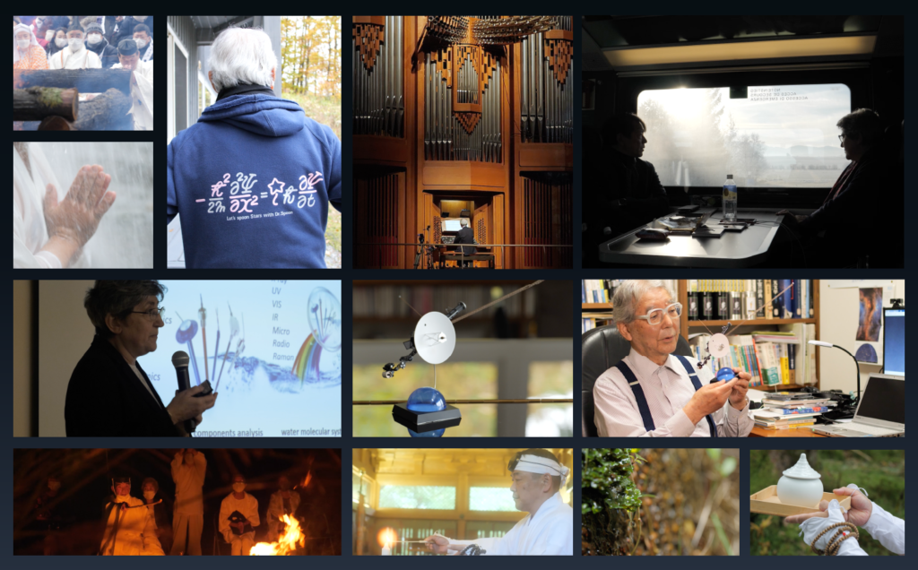 本作品では、森羅万象の姿に習い、科学者、宗教者の発する⾔葉を借り、「⽔」が映す軌跡に命、魂を感じ、その姿に触れていきたいと思います。